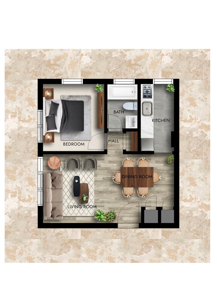 2 Beds, 1 Bath, 790-815 sq ftModel Gallery