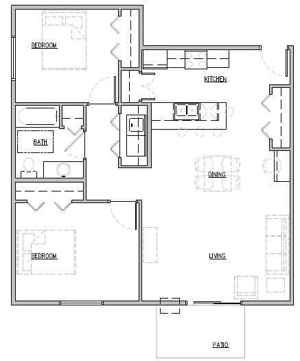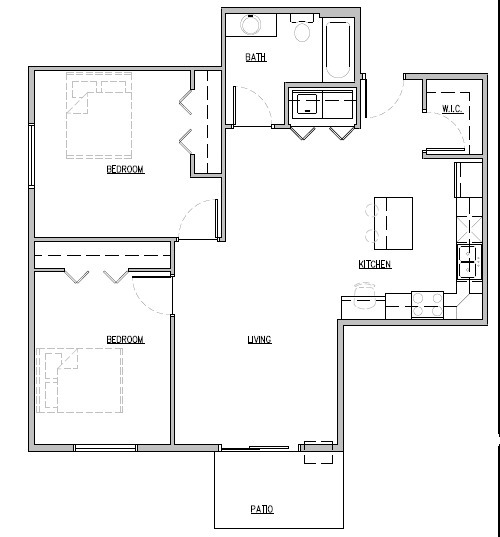 1 bed 1 bath - Floorplan 3 2 Bedrooms