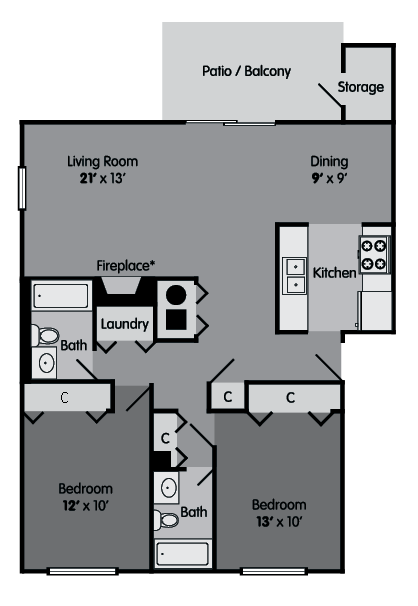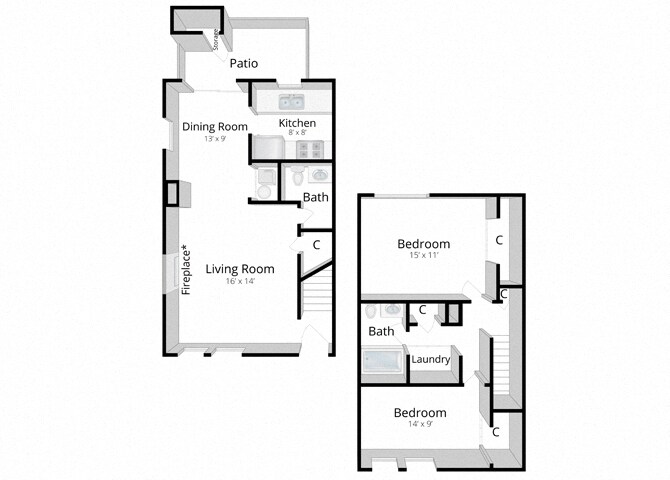 2 Bedroom Townhome - Floorplan 1 ![]()