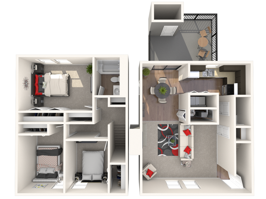 Apartment Model: 3 Bedroom TownhomeFrom $1,8503 Bedroom, 1.5 Bath, 1177 sq ftAvailable October 30, 2025![]()