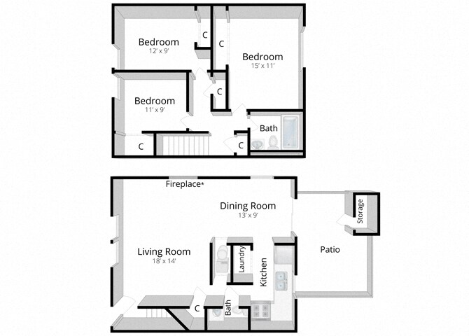 3 Bedroom Townhome - Floorplan 1 ![]()