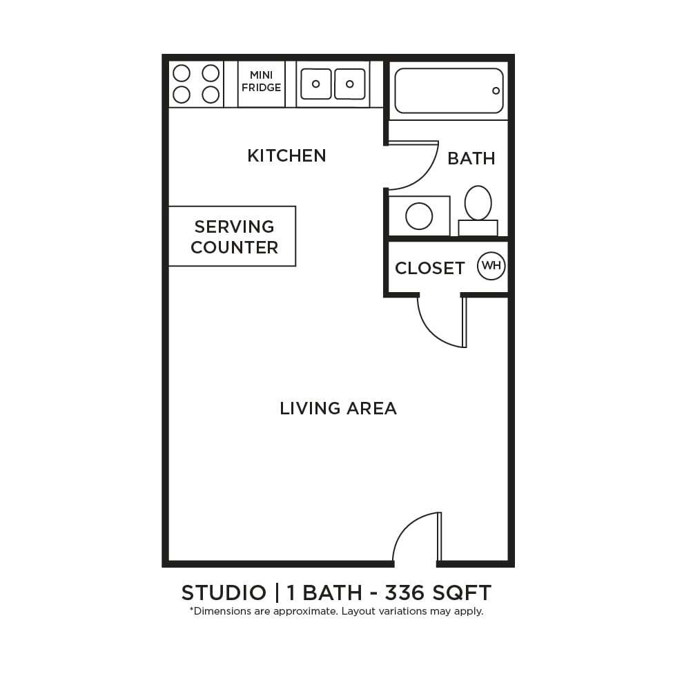 Studio, 1 Bath, 336 sq ftModel Gallery
