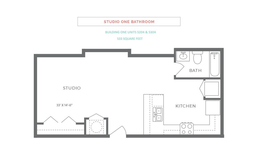 Studio, 1 Bath, 533 sq ftAvailable Aug 1, 2026Model Gallery