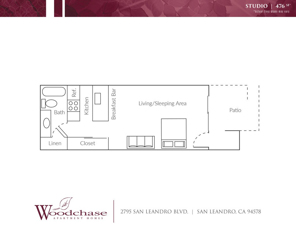 Woodchase Studio - Floorplan 1 1 Bedroom