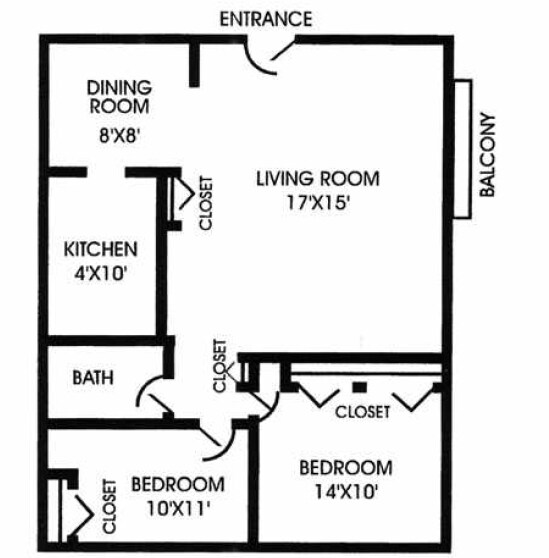 Apartment Model: 2 BedroomFrom $9102 Bedroom, 1 Bath, 598-880 sq ftAvailable January 15, 2026![]()