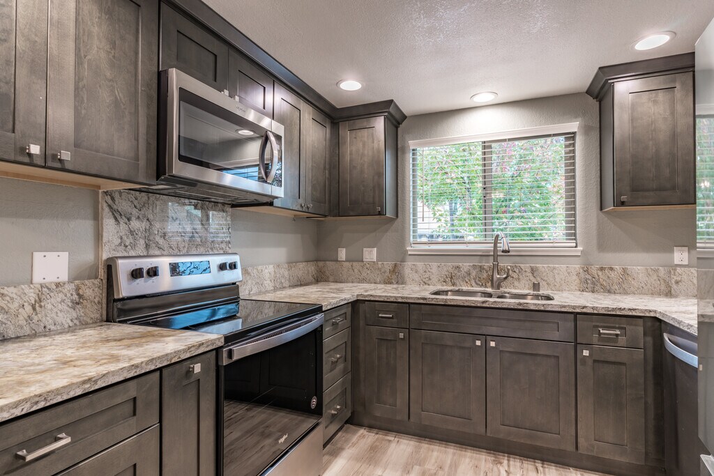 Maple coming available in January! Complete remodeled unit, inside and out. Inside units are remodeled with built in microwaves, dishwasher, stove/oven, with appliances, including your private washer and dryer in each unit. Remodels are top to bottom and include all new cabinets, floors, updated paint colors along with new trim, windows, window coverings, lights, switches, electrical outlets, fences, interior doors, counters, sinks, plumbing fixtures and more! All units have a private attached 2 car garage. We have security cameras on site and a swimming pool plus we have a FANTASTIC Location!!! Income requirements are income of at least 3 to 3.5 times the rent amount, great credit and great rental history. We are a non smoking quiet complex. Bonus is that we pay water, sewer and garbage! You also have the option to sign up and enjoy our concierge services that include 5% of rent going to a virtual account for a future home purchase! It's more like your own condo than a regular apartment! A true place to call home!