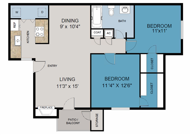 Apartment Model: 1 Bedroom 1 BathroomFrom $9551 Bedroom, 1 Bath, 531 sq ftAvailable Now![]()