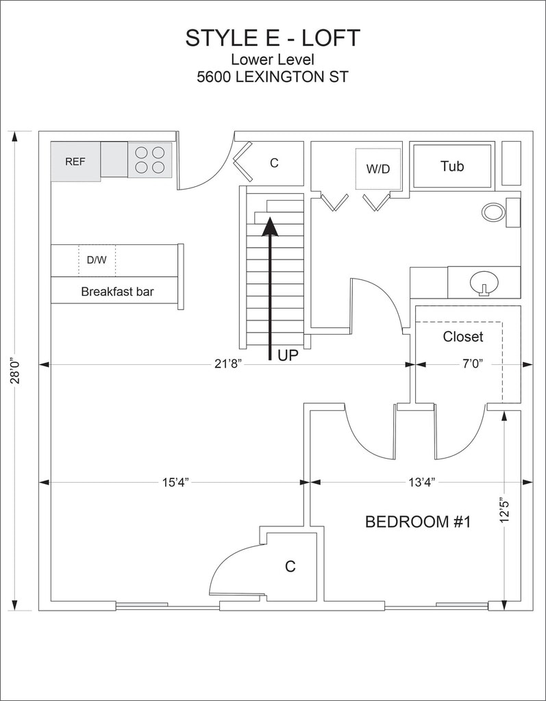Style A - 5601 - Floorplan 11 Apartment Unit: 5601-206Apartment Model: Style A - 5601$1,7952 Bedroom, 1.5 Bath, 1040 sq ftAvailable NowStyle E Loft - 5600