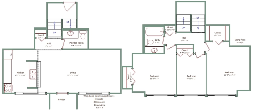 1 Bedroom to 3 Bedroom Apartments at Woodland Court currently range from $1,045 to $1,592