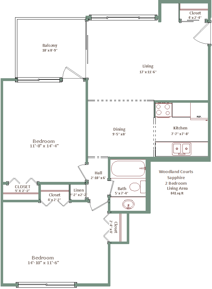 Apartment Model: Sapphire$1,1742 Bedroom, 1 Bath, 841 sq ftAvailable Now![]()