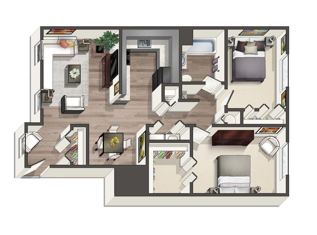 2 Beds, 1 Bath, 890 sq ftAvailable NowModel Gallery