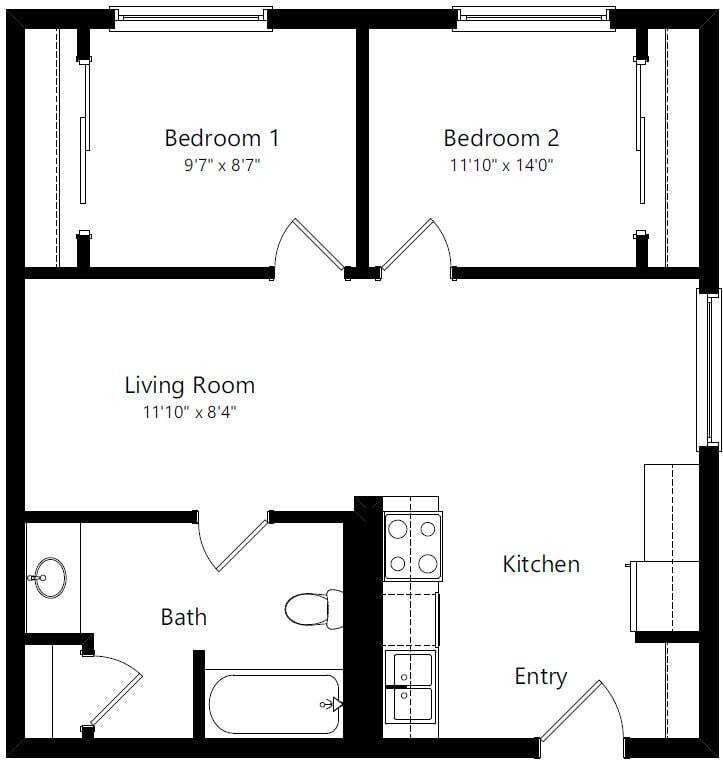 - Studio–2 Bedrooms