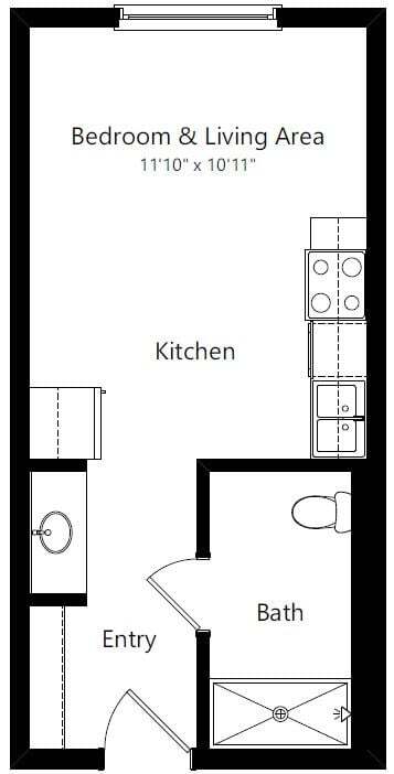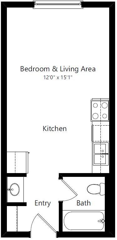 Studio, 1 Bath, 328-338 sq ftAvailable NowModel Gallery