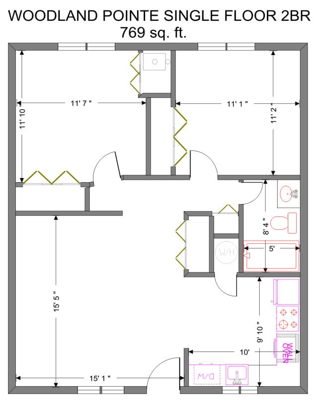 Woodland Pointe offers 1 to 4 Bedroom apartments having 540–1,641 sqft. Here is the current pricing and availability: