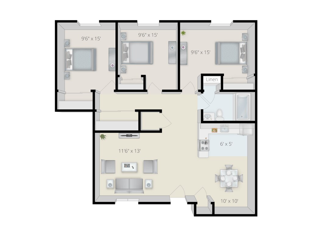 Apartment Model: 3 BedroomFrom $1,2003 Bedroom, 1 Bath, 1006 sq ftAvailable Now3 Bedroom - Floorplan 1 Apartment Unit: B18Apartment Model: 3 Bedroom$1,2003 Bedroom, 1 Bath, 1006 sq ftAvailable NowApartment Unit: D14Apartment Model: 3 Bedroom$1,2003 Bedroom, 1 Bath, 1006 sq ftAvailable NowApartment Unit: C11Apartment Model: 3 Bedroom$1,2753 Bedroom, 1 Bath, 1006 sq ftAvailable Now3 Bedroom XL