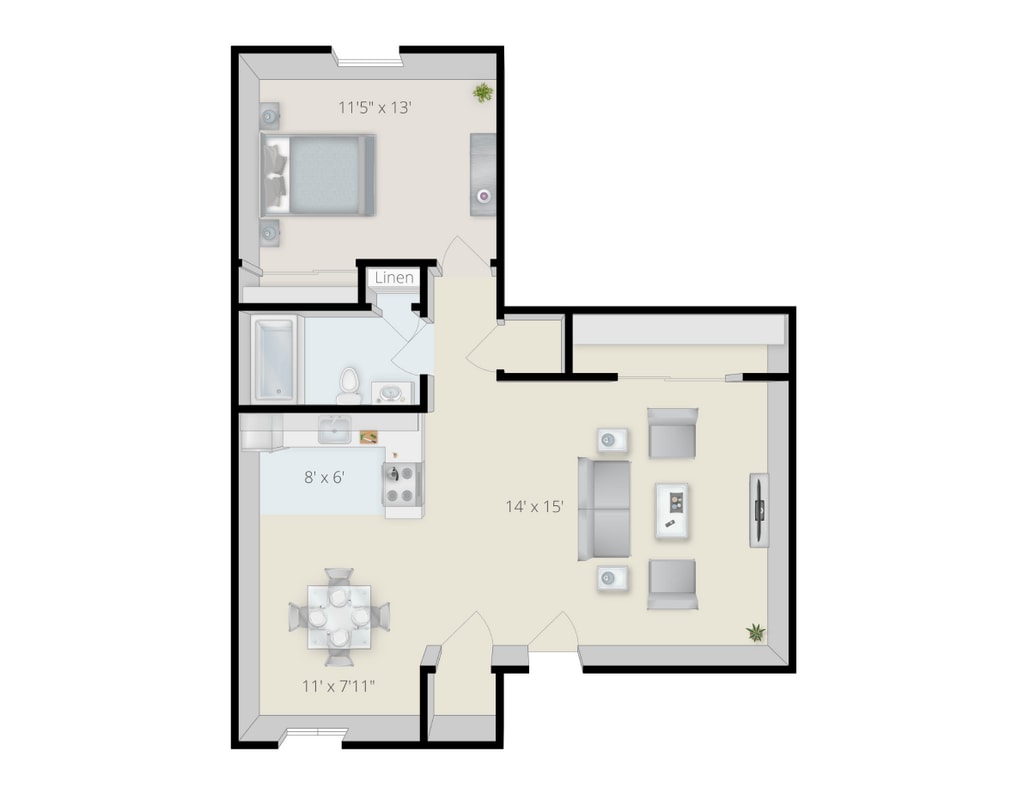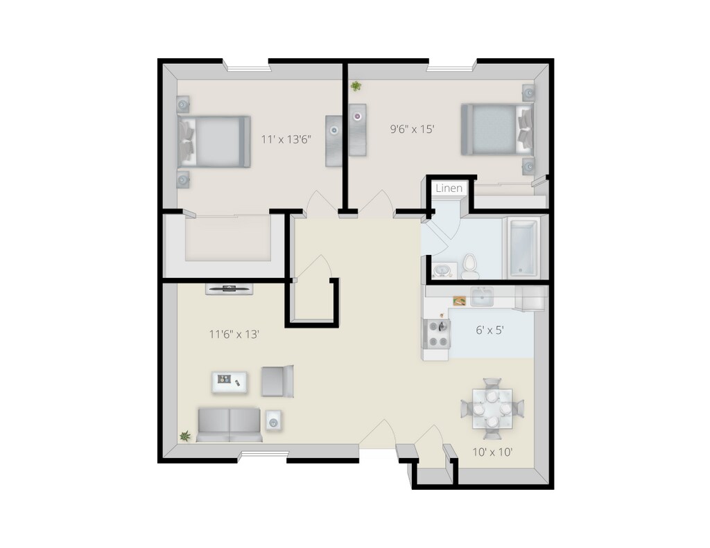 2 Beds, 1 Bath, 840 sq ftAvailable NowModel Gallery