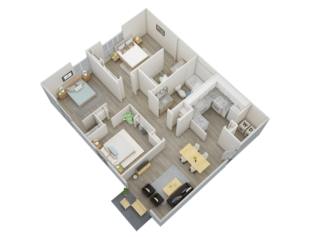 3 Beds, 2 Baths, 889 sq ftModel Gallery