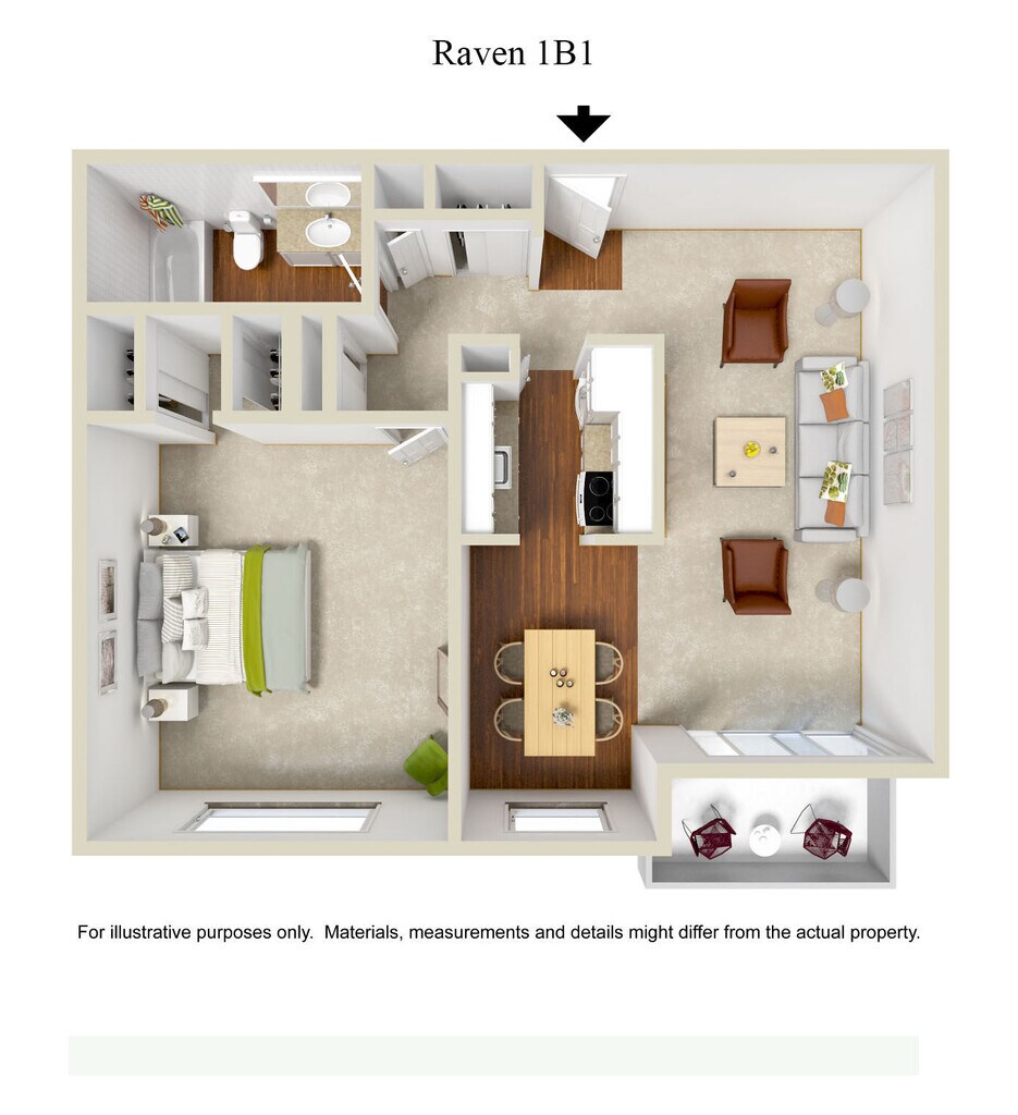 Apartment Model: RavenFrom $2,0451 Bedroom, 1 Bath, 729 sq ftUnavailable![]()