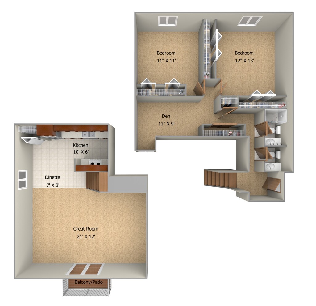 2 Bed 1 Bath - Floorplan 2 Apartment Unit: 1864Apartment Model: 2 Bed 1 Bath2 Bedroom, 1 Bath, 1050 sq ftAvailable SoonApartment Unit: 2352Apartment Model: 2 Bed 1 Bath2 Bedroom, 1 Bath, 1050 sq ftAvailable Soon2 Bed 1.5 Bath with Den