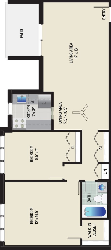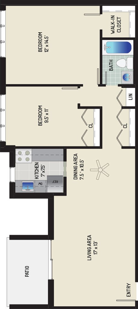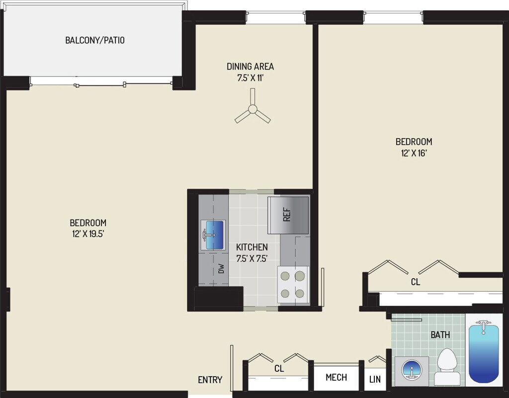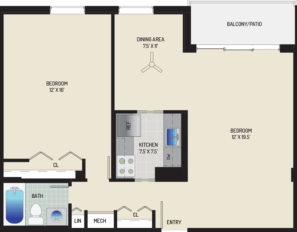 2 Bedrooms + 1 Bath - Floorplan 12 ![]()