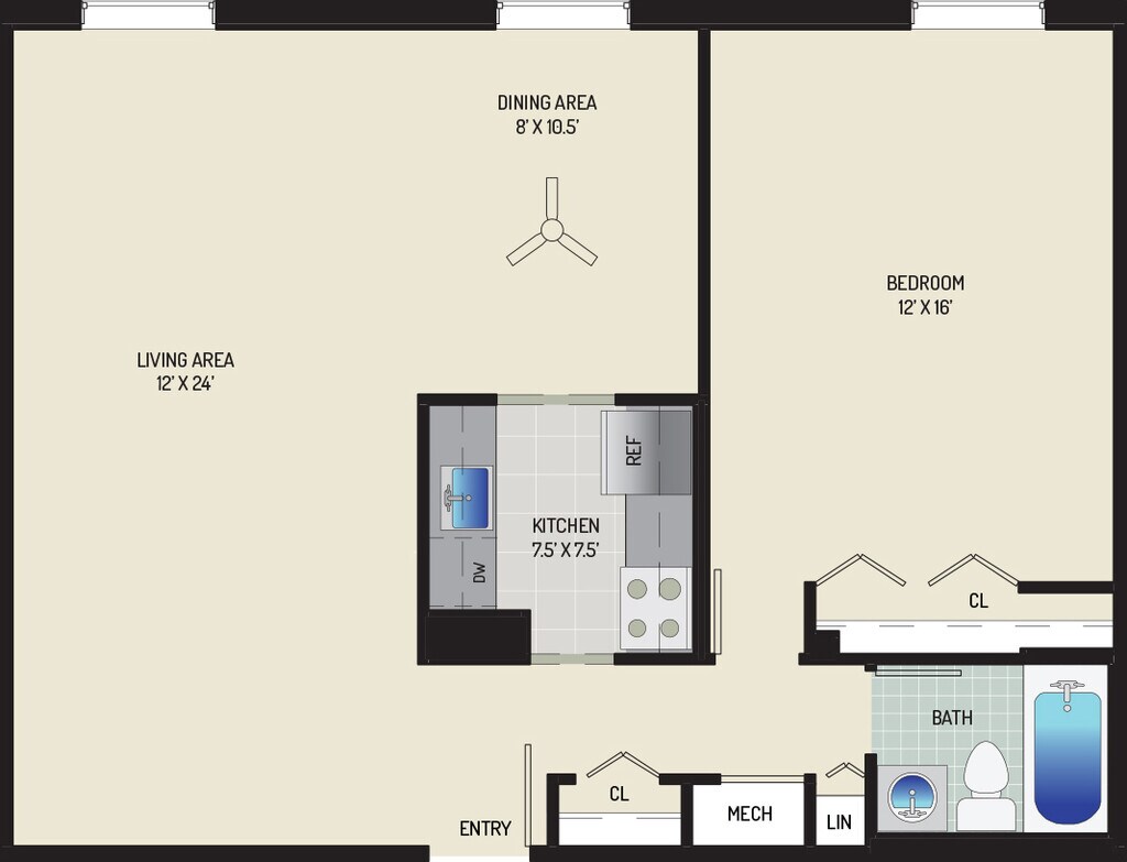 1 Bedroom + 1 Bath - Floorplan 12 ![]()