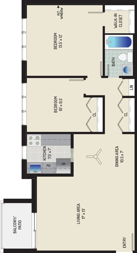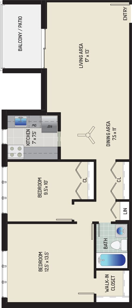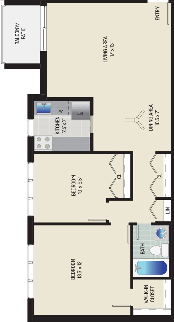 2 Bedrooms + 1 Bath - Floorplan 13 ![]()