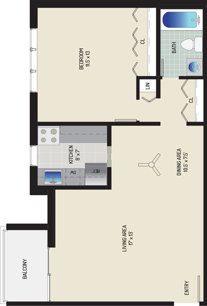1 Bedroom + 1 Bath - Floorplan 17 ![]()