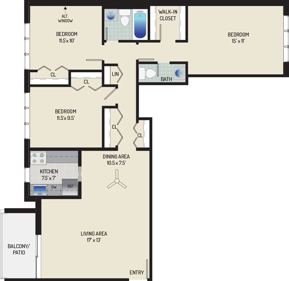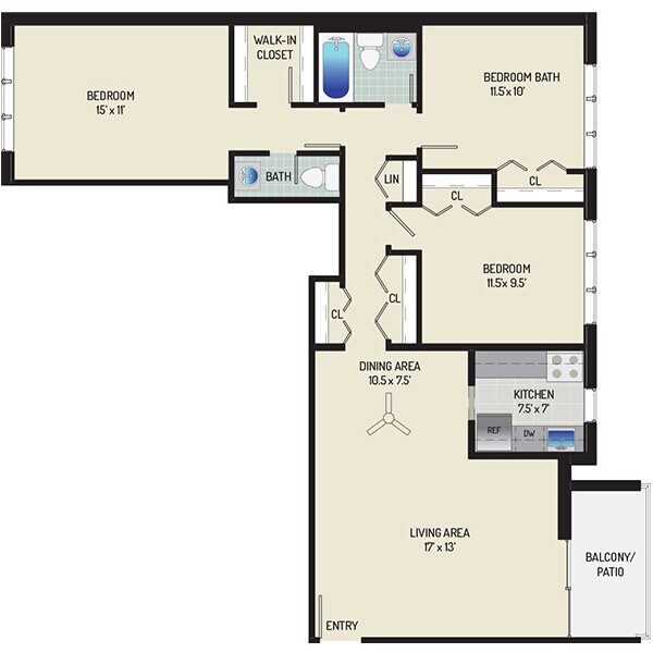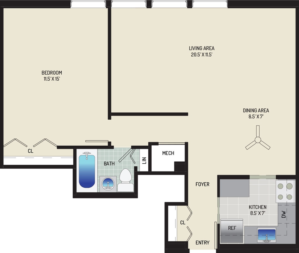 1 Bedroom + 1 Bath - Floorplan 15 ![]()