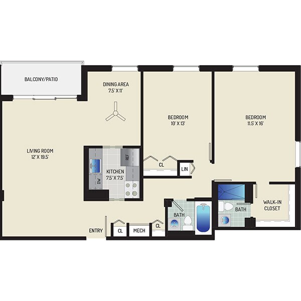 Apartment Model: 2 Bedrooms + 2 Baths2 Bedroom, 2 Bath, 950 sq ftAvailable Now![]()