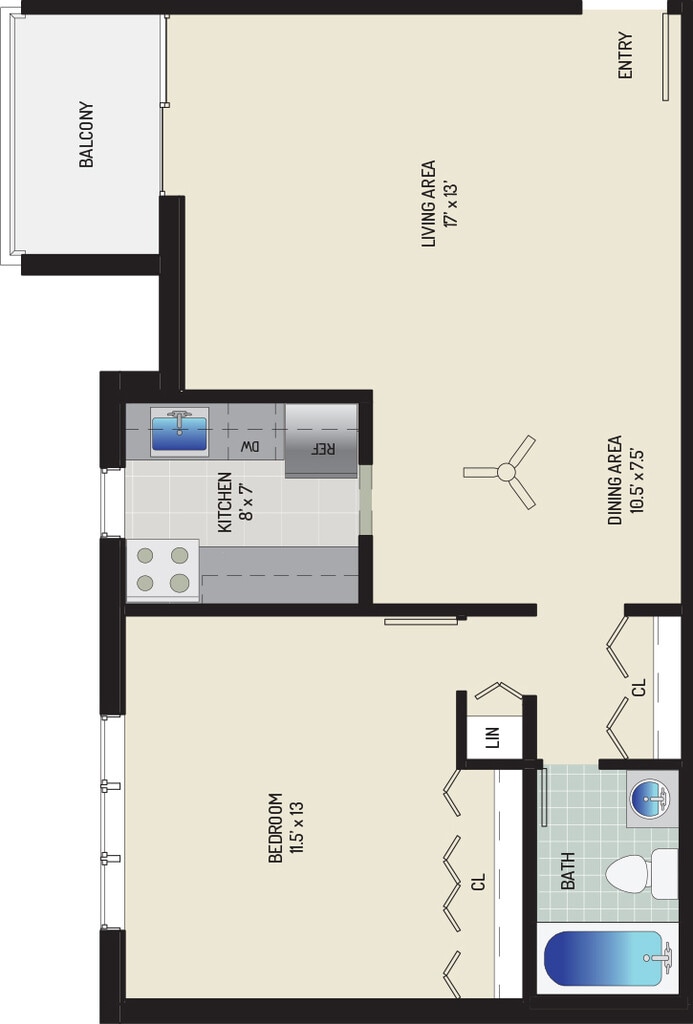1 Bedroom + 1 Bath - Floorplan 13 ![]()