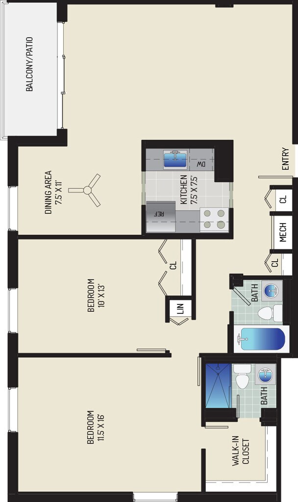 2 Bedrooms + 1 Bath - Floorplan 11 ![]()