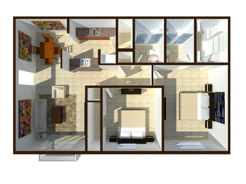 2 Beds, 2 Baths, 850 sq ftModel Gallery
