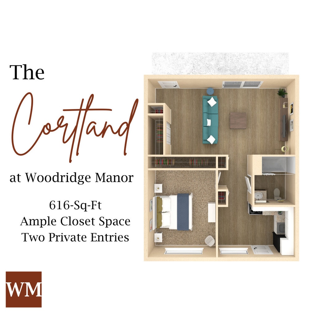 The Cortland - Floorplan 2 Apartment Unit: 2049Apartment Model: The CortlandCall For Rates1 Bedroom, 1 Bath, 616 sq ftAvailable Now2 Bedrooms