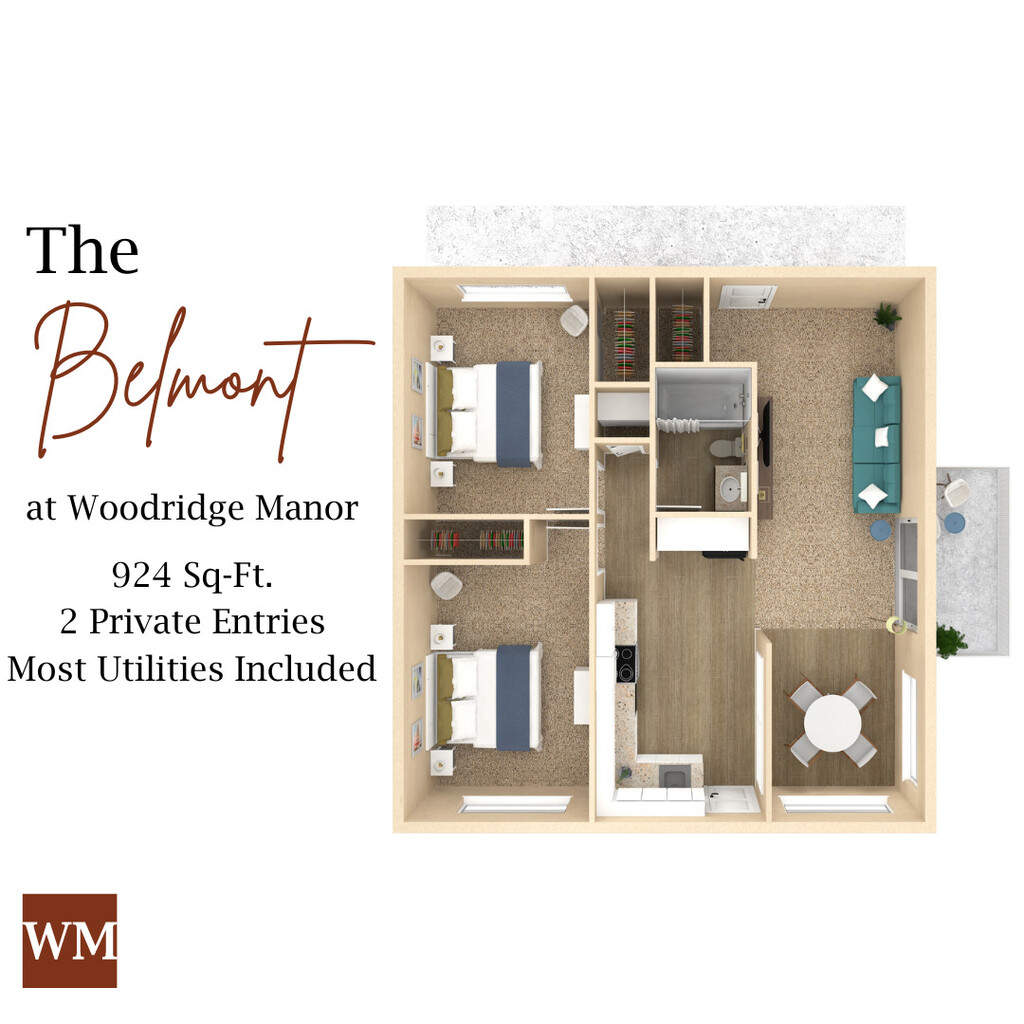 Apartment Model: The Belmont$2,1402 Bedroom, 1 Bath, 924 sq ftAvailable Now![]()