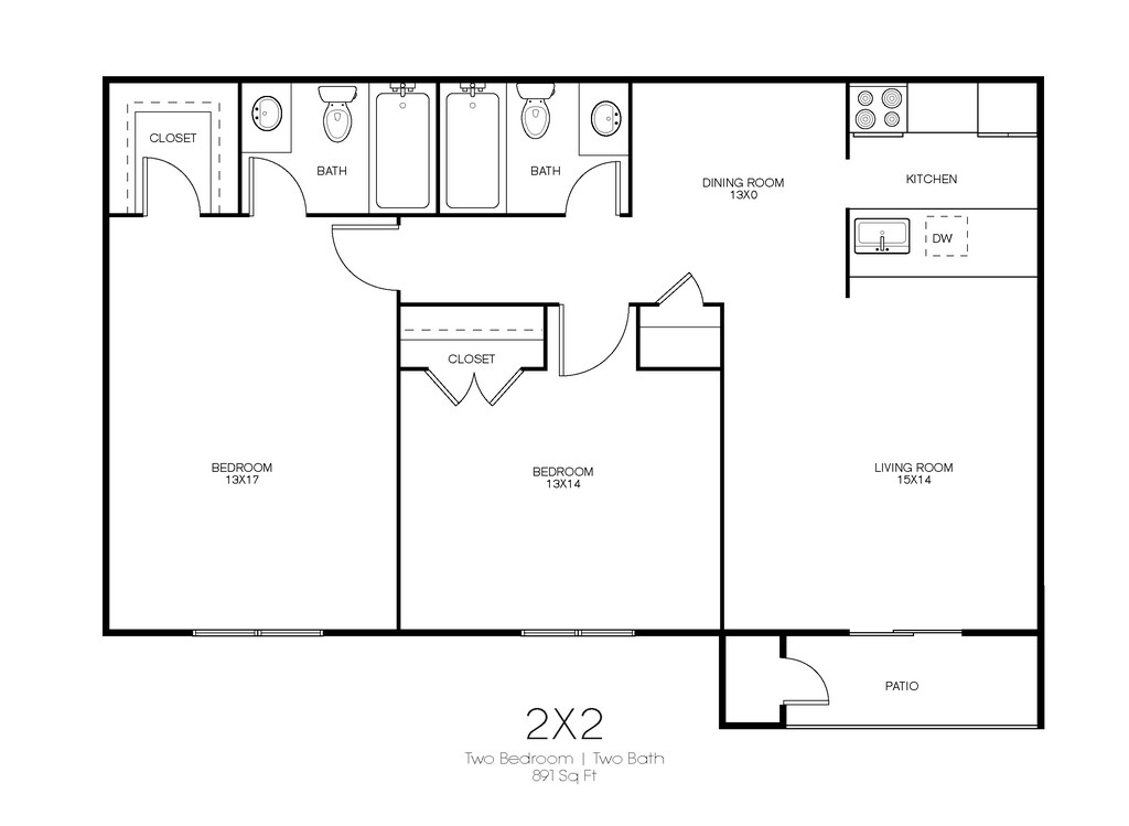 2 Beds, 2 Baths, 891 sq ftAvailable NowLargest 2 BedroomThis is the largest 2 Bedroom at this PropertyModel Gallery