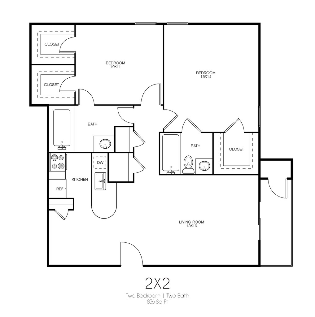 2 Beds, 2 Baths, 856 sq ftAvailable NowModel Gallery