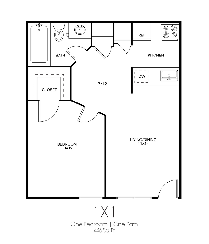 Apartment Model: A1$9251 Bedroom, 1 Bath, 446 sq ftAvailable Now![]()