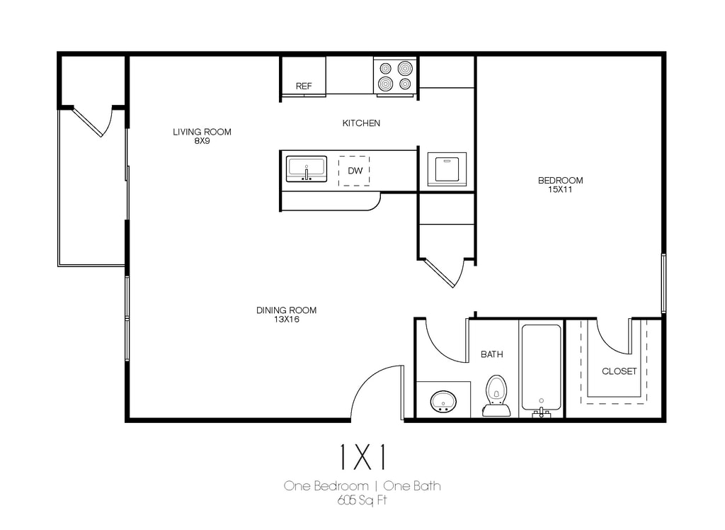 1 Bed, 1 Bath, 605 sq ftAvailable NowLargest 1 BedroomThis is the largest 1 Bedroom at this PropertyModel Gallery