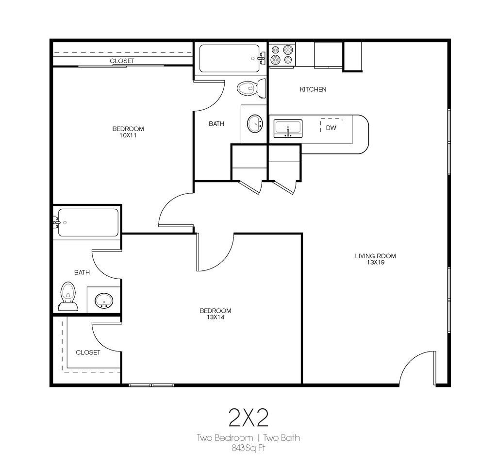 2 Beds, 2 Baths, 843 sq ftAvailable NowModel Gallery