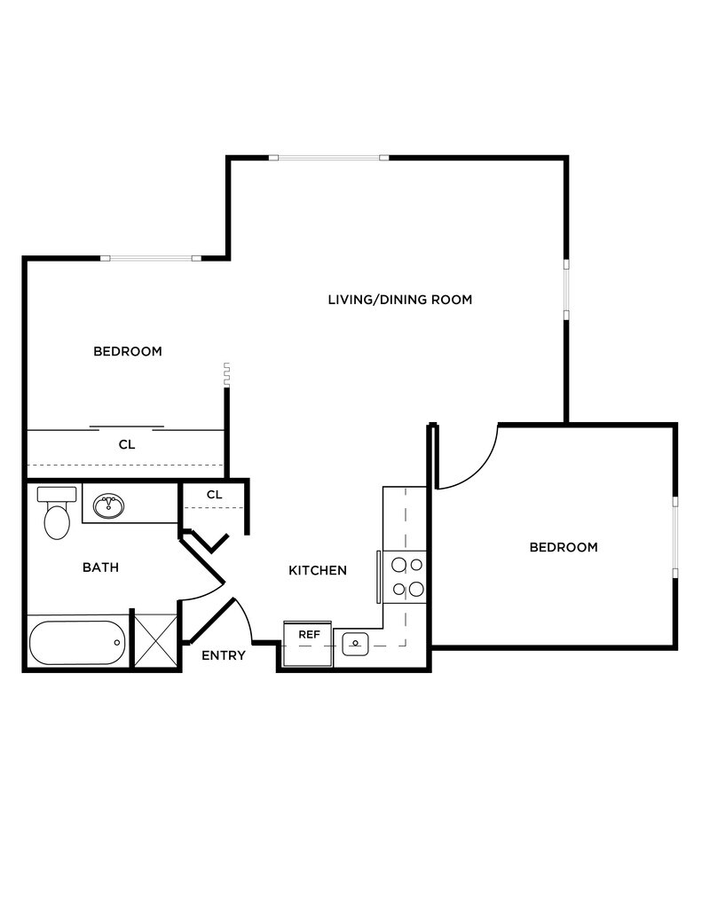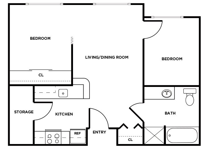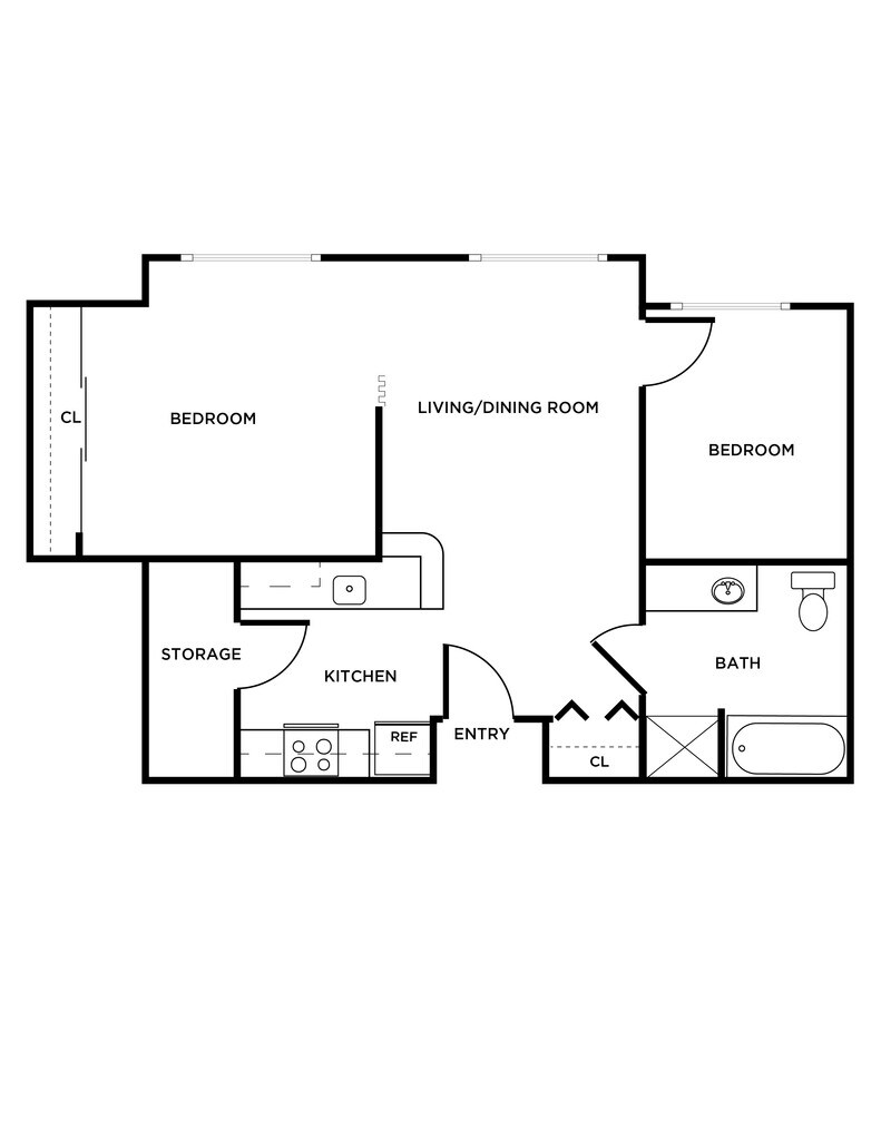 2 Beds, 1 Bath, 713 sq ftLargest 2 BedroomThis is the largest 2 Bedroom at this PropertyModel Gallery