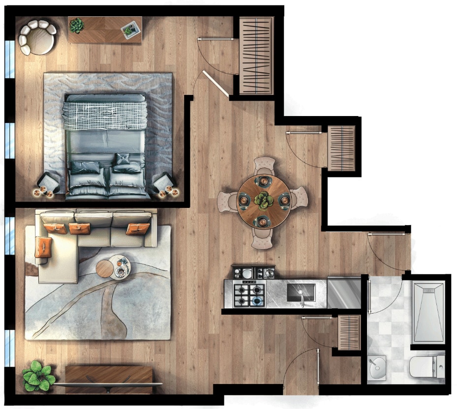 1 Bed, 1 Bath, 335-586 sq ftModel Gallery