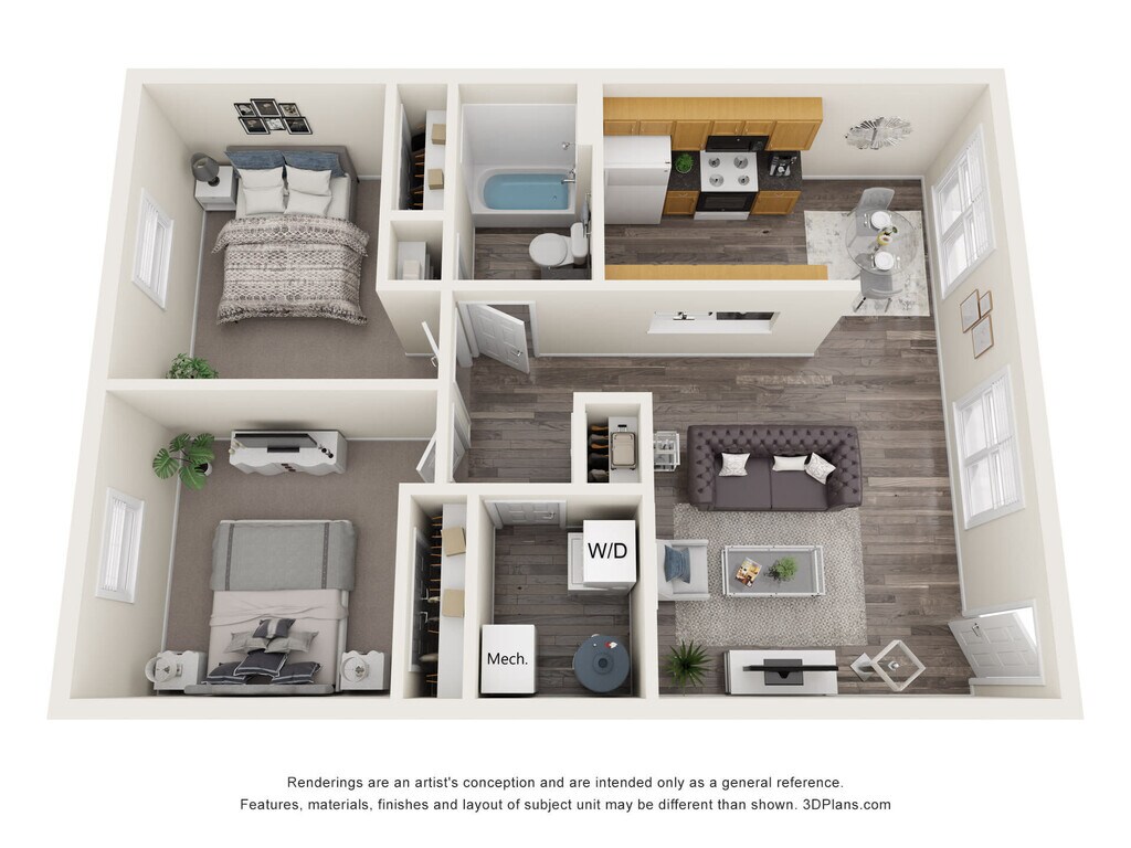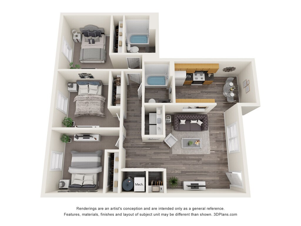 3 Beds, 2 Baths, 1054 sq ftAvailable NowModel Gallery
