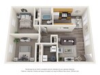 2 Beds, 1 Bath, 834 sq ftModel Gallery