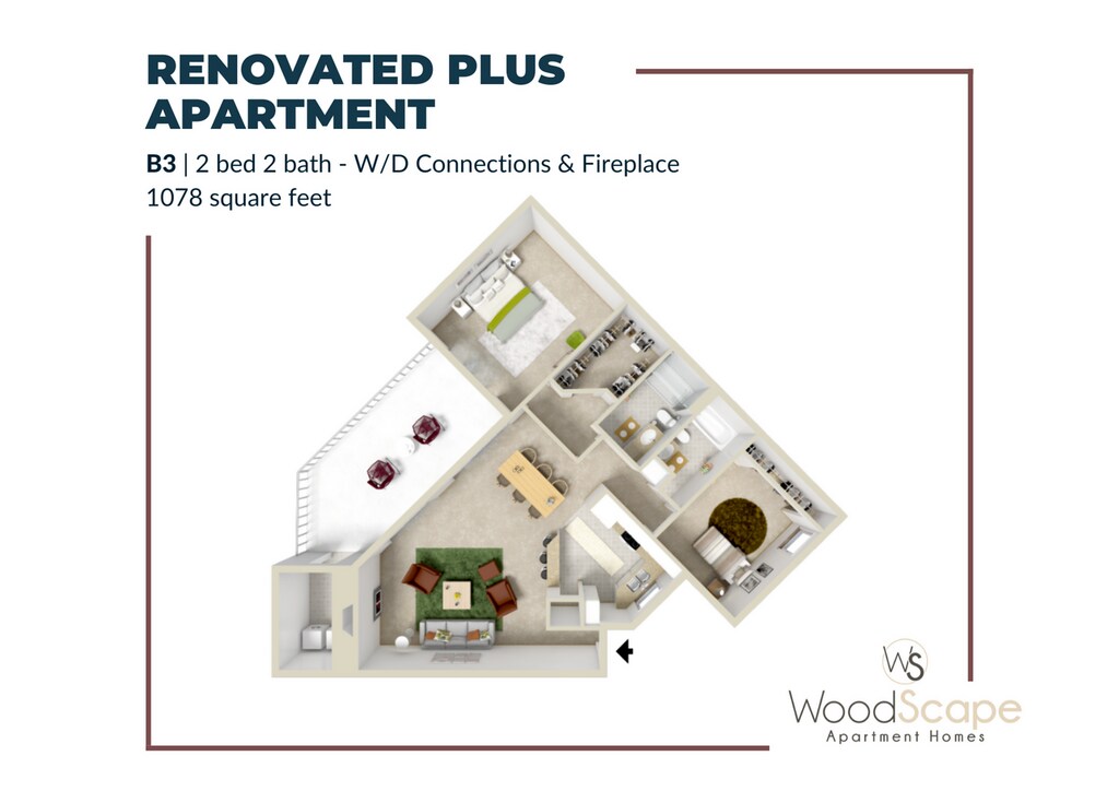 A3 Renovated - Floorplan 1 A5 (W/D Connections and Fireplace) Renovated