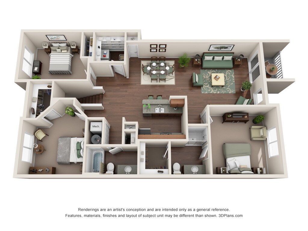 3 Beds, 2 Baths, 1345 sq ftModel Gallery