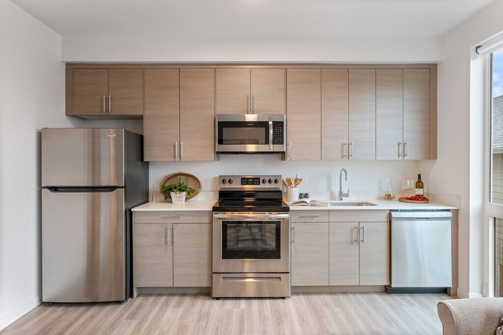 Welcome to modern living in the heart of Lents, Portland! Our apartments offer elegance and convenience with features like hard surface floors, large windows for natural light, high ceilings, stainless appliances, custom cabinetry, quartz countertops, and in-unit washer/dryer. These units also all feature built in AC ports for quick set up in the warmer seasons. Located with easy access to Foster or Highway 205, our community puts you minutes away from coffee shops, restaurants, bars, gyms, and shops, including New Seasons and SF International Market for your grocery needs. Savor local cuisine from Delta Cafe, Heart Coffee, 808 Grill, Flip Side Bar & Carts, The Heist Food Carts, and Bella’s Italian Bakery & Coffee. With dedicated bike room storage and a gated community setting, experience the best of urban living with convenience and style. Your new home in Lents awaits!e! - 12 Month Lease term - Unfurnished - Tenant pays own electric - Tenant pays flat rate for water/sewer/garbage - Security deposit equal to one month's rent - 1 pet allowed with pet rent (dogs under 30IBS) a) Applications will be accepted on 9/7 b) Unit is not a Type A "accessible" unit. c) $55 screening fee per applicant. Landlord will use an individualized assessment to screen applicants. Reasons for screening denial may include: 1) Criminal conviction history 2) Derogatory credit history (minimum credit score of 620) 3) Derogatory rental history 4) Income less than 2.5x the rental rate 5) Inability to verify application information. *Note: photos may be of a similar unit* Take a virtual tour: Take a virtual tour: Take a virtual tour: