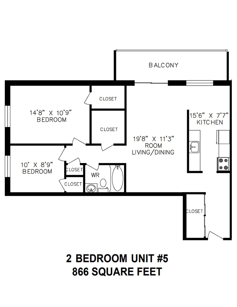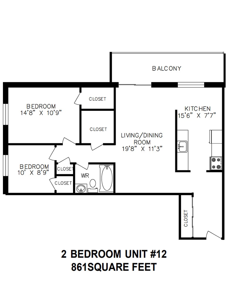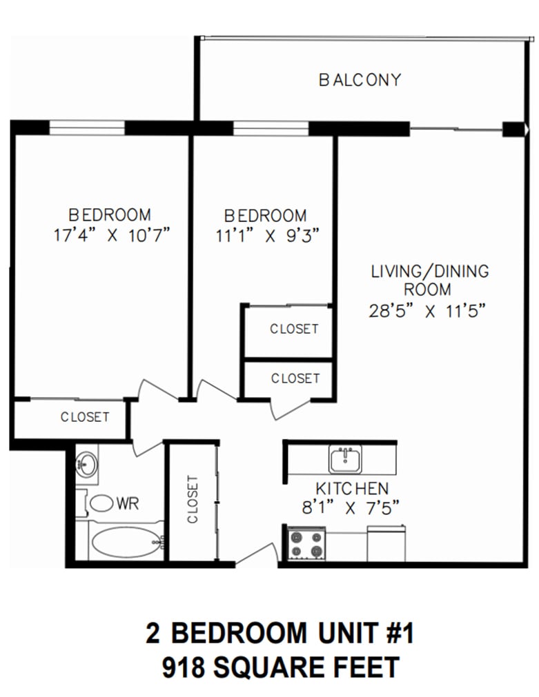 1 Bedroom - Floorplan 6 2 Bedrooms