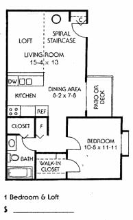 1x1 Loft - Floorplan 1 Apartment Unit: 91-2GApartment Model: 1x1 Loft$1,4101 Bedroom, 1 Bath, 760 sq ftAvailable November 3, 20252 Bedrooms