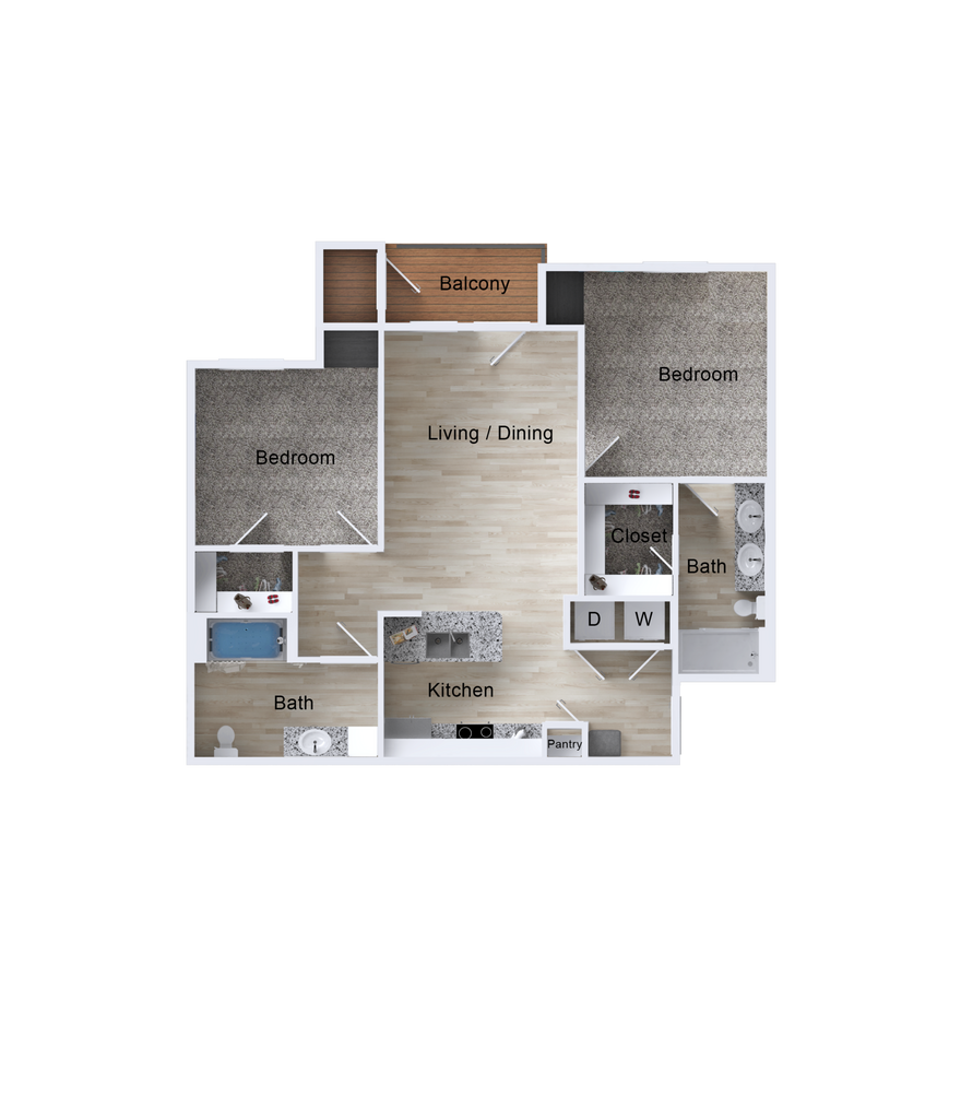 1 Bed, 1 Bath, 724 sq ftAvailable NowModel Gallery