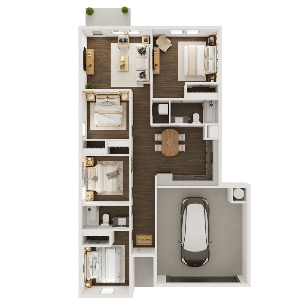 The Goldfinch - Floorplan 1 Apartment Unit: 114-6500Apartment Model: The Goldfinch$1,4693 Bedroom, 2 Bath, 1101 sq ftAvailable December 15, 20254 Bedrooms